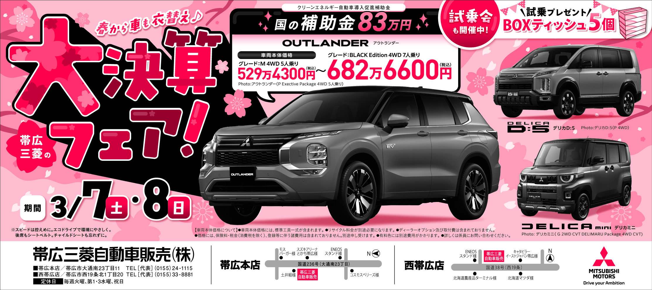 広告に掲載の『アウトランダーPHEV』は国の補助金対象車であり、83万円が交付されます👛